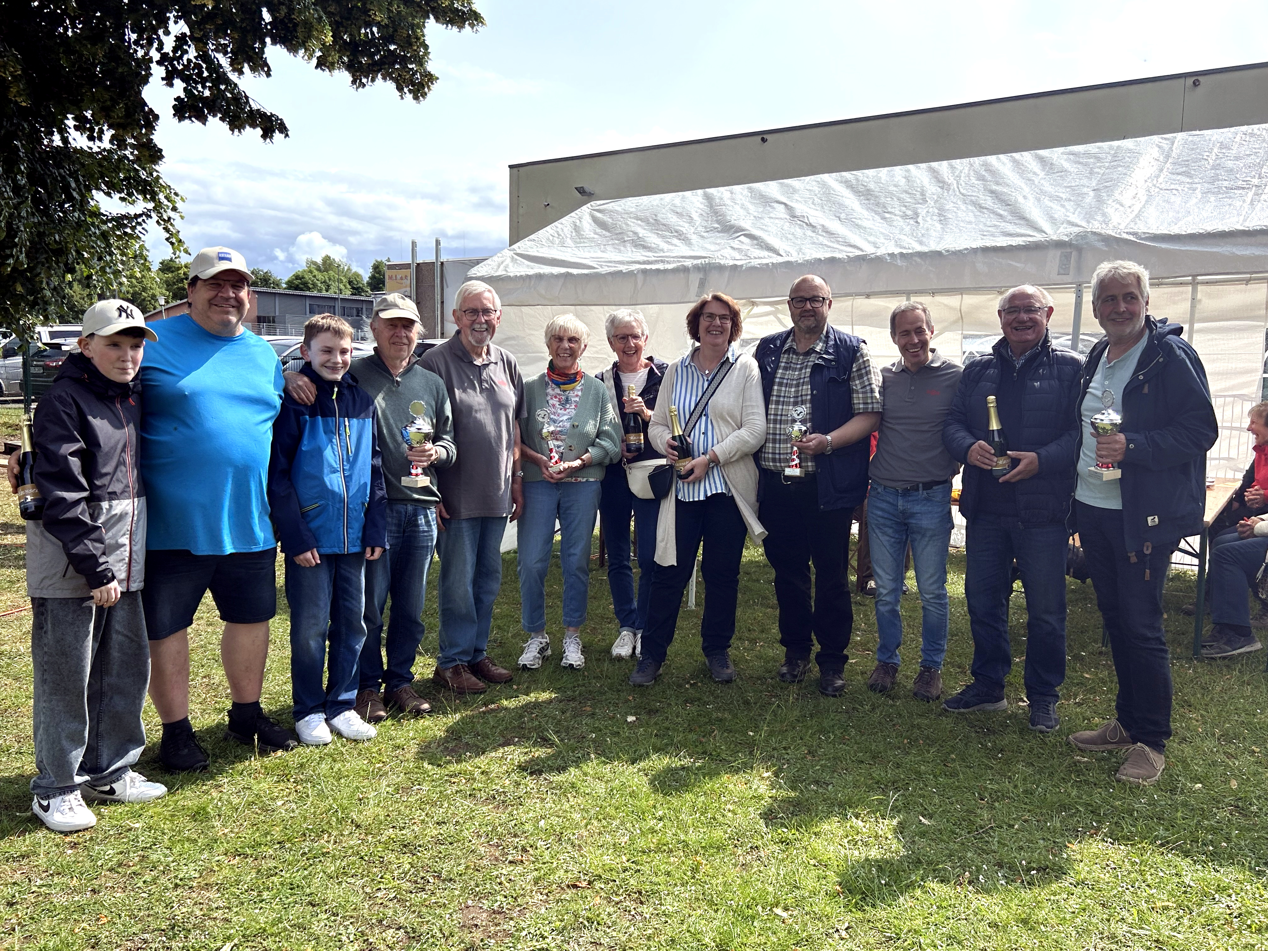 Am 7.6.2025, Pfingstsamstag, traten 14 Mannschaften an, um Sieg und Platzierungen zu kämpfen. Bei wechselhaftem Wetter fanden gegen 16.00 Uhr die Endspiele statt. Im Endspiel traten Matthias Voßen und Gerd Henn gegen Menn Kempen...
