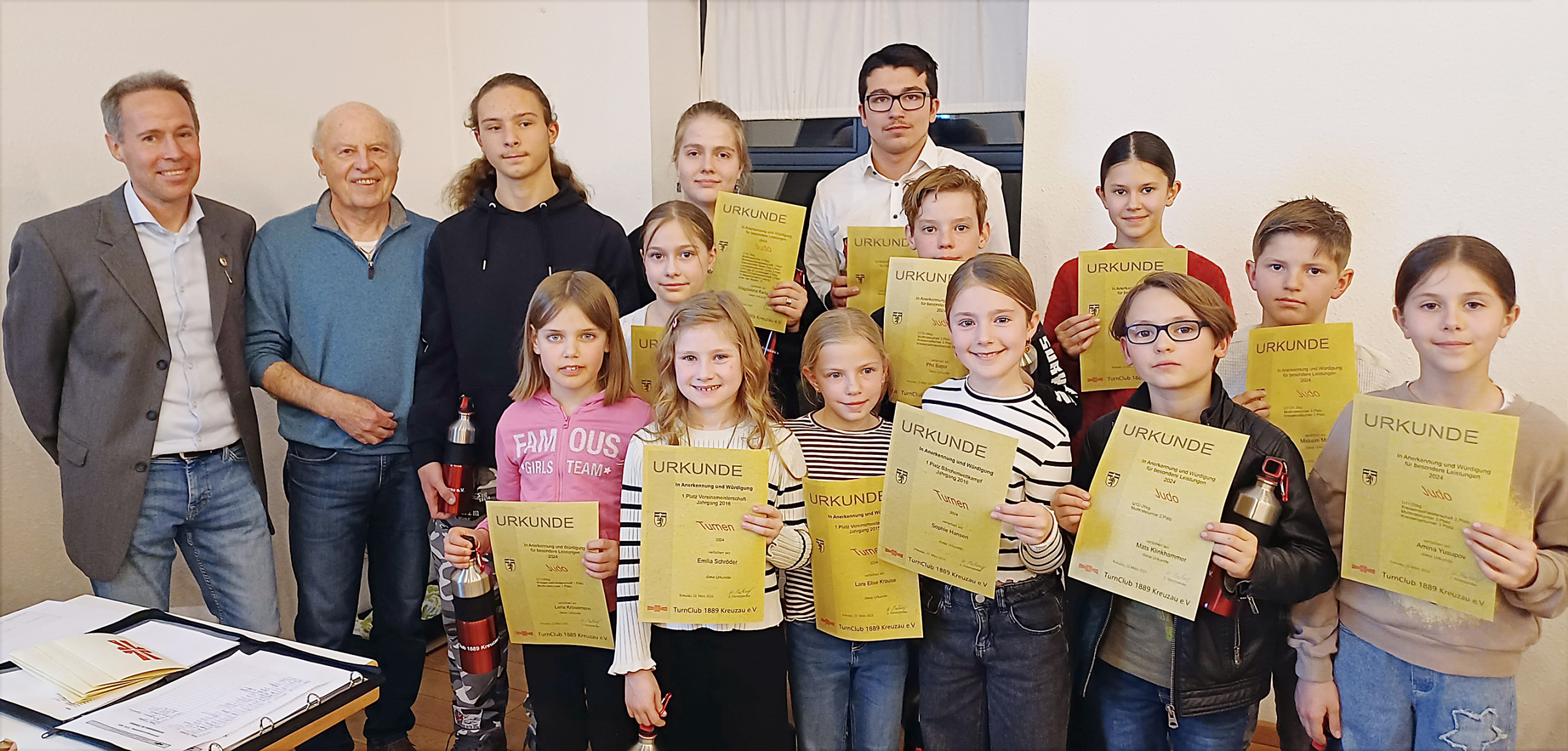Auf seiner Jahreshauptversammlung im März ehrte der Turnclub Kreuzau langjährige Mitglieder für ihre Treue zum Verein. Unter anderem sind Hildegard Henn und Gerd Henn (4. und 3. v.l.) seit 50 Jahren Mitglied im Turnclub. Kinder und Jugendliche wurden für Ihre besonderen Leistungen im Ju-Jutsu/Judo und Turnen sowie ihr erfolgreiches Abschneiden bei verschiedenen Wettkämpfen bis zu den Deutschen Meisterschaften ausgezeichnet.