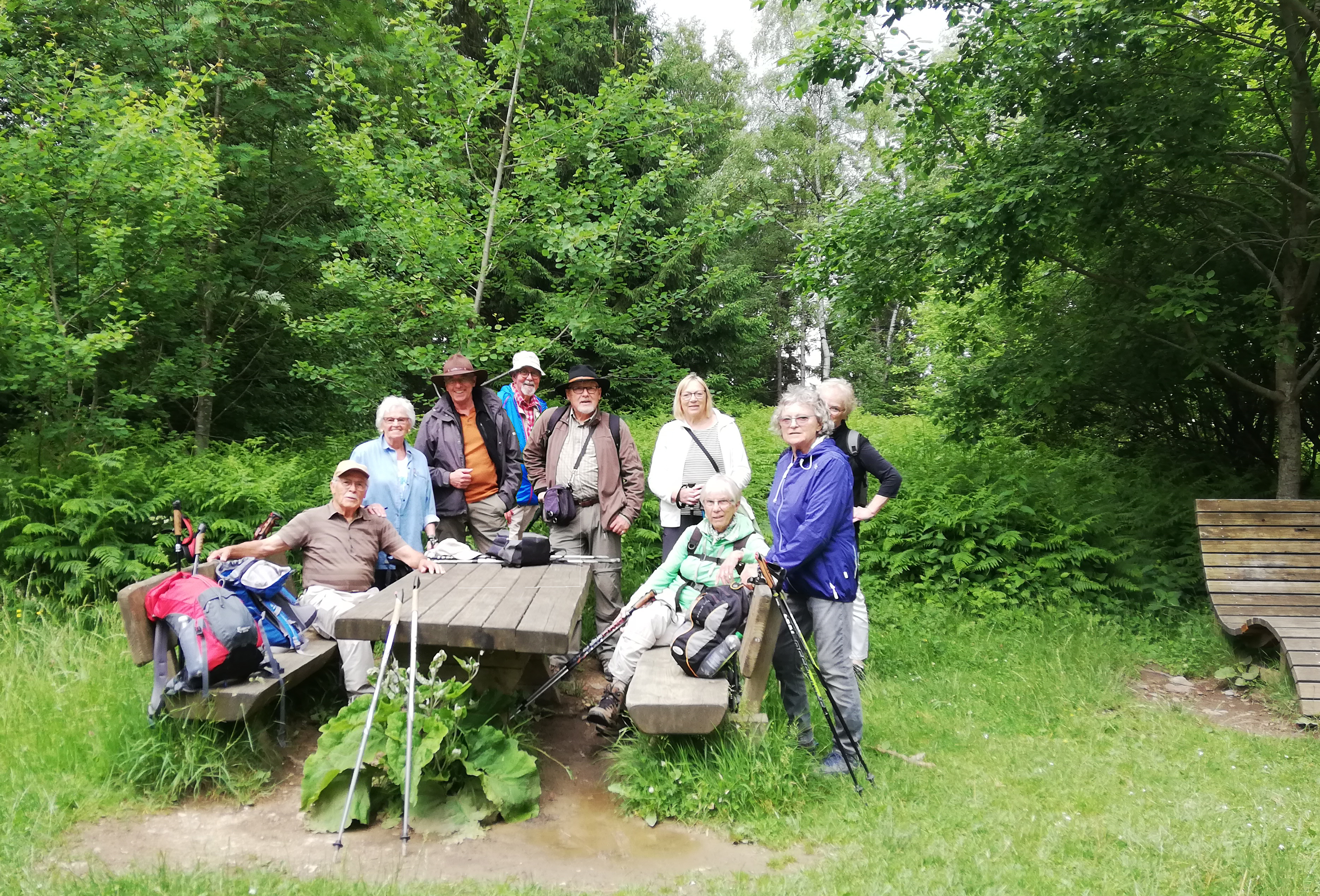 Am späten Vormittag traten 9 Senioren die Fahrt mit PKWs in Richtung Roetgen an. Vom Parkplatz „Filterwerk“ führte der Weg etwa 500 Meter entlang der Landstraße. Hier hatte das Hochwasser vom Juli 2021 große Schäden angerichtet, sodass durch den Vichtbach alle Wanderwege einschließlich der Brücken weggespült worden waren. Über einen höher gelegenen Wanderweg wurden schließlich die letzten Häuser von Roetgen erreicht. Über einen leichten Anstieg erreichte Gruppe, unter Führung von Dieter Simons, den Schleebach Graben.